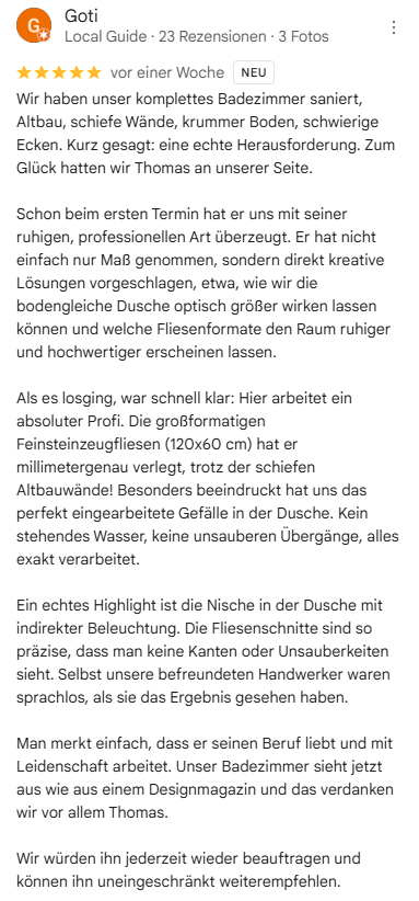 Ihr Partner des Vertrauens für Fugenlose Bäder
